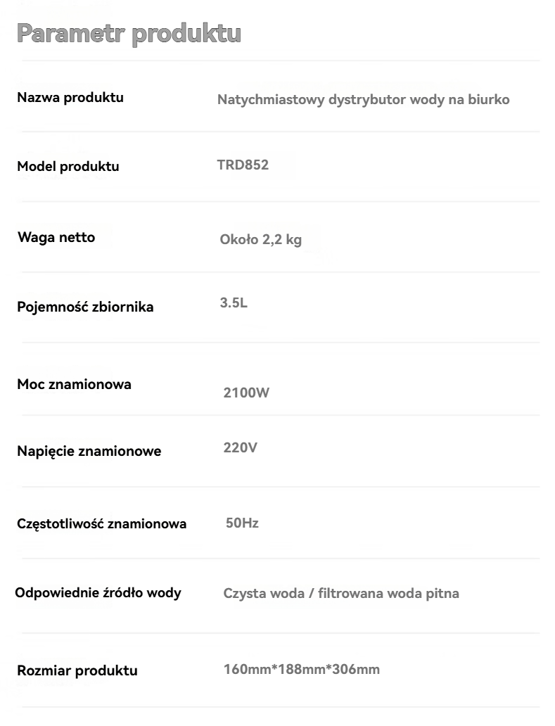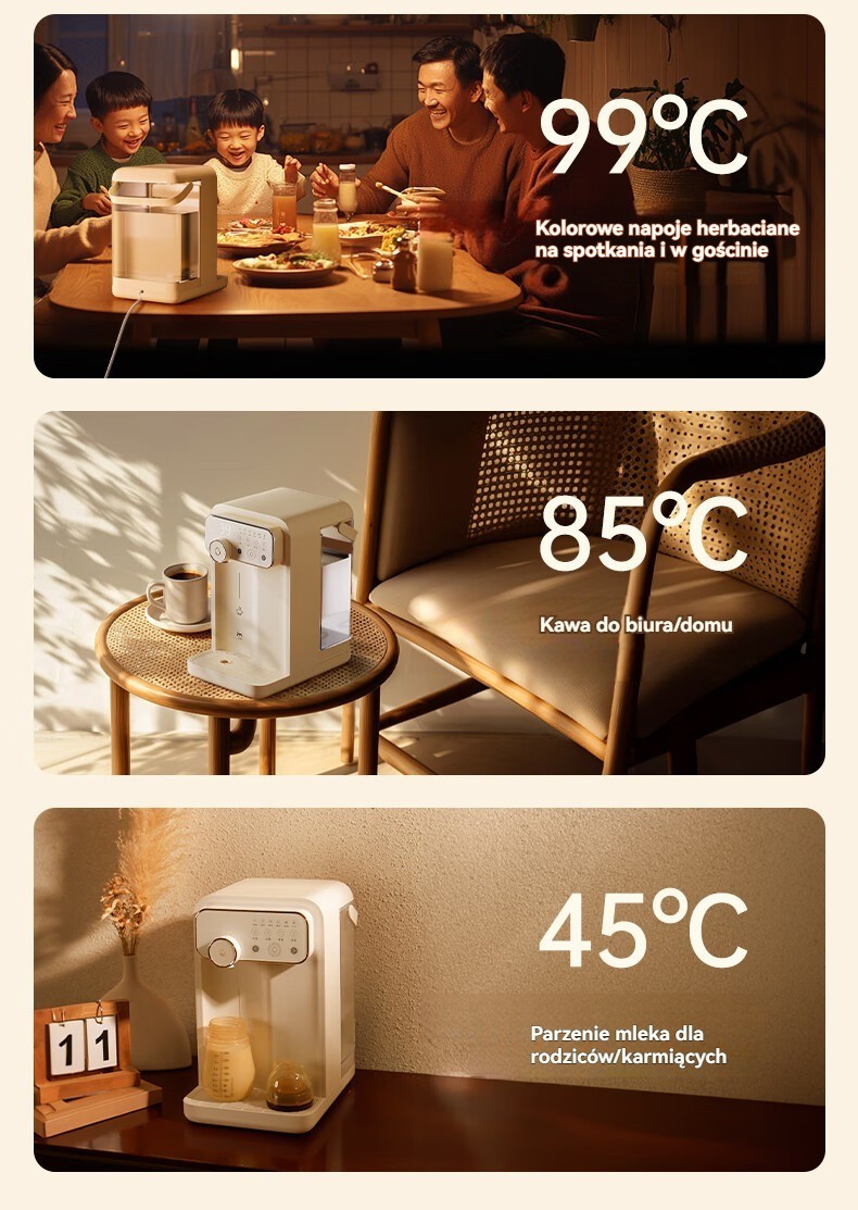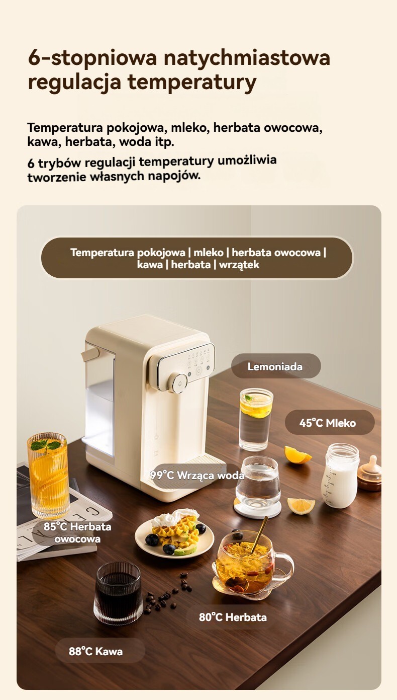 Natychmiastowy dystrybutor gorącej wody na biurko
